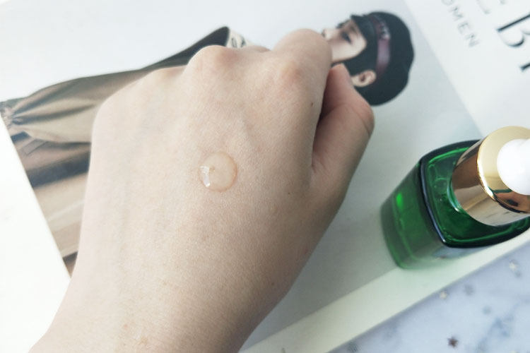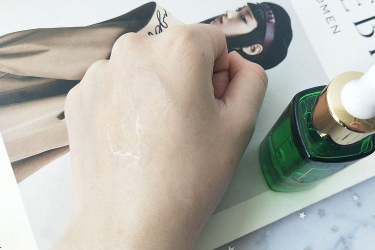 在光洁的手背滴上一小管原液精华液,可以感受到它清润的质地渐渐舒缓整片肌肤,带来舒适自在的护肤体验,而且涂抹在皮肤上一点都不会觉得黏腻不舒服,依旧是清爽保湿,平常使用的时候这么一点就可以涂抹大半张脸了,因此记得要控制好用量,避免挤压出太多的原液。