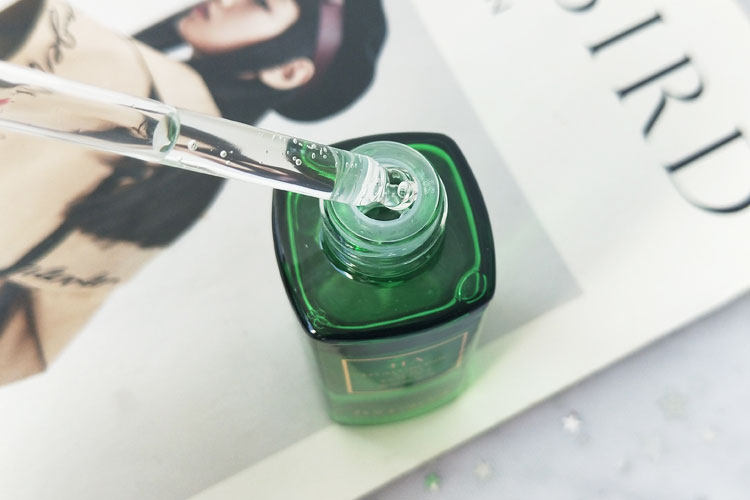 怎么样?有没有被它的外观给cue到呢?这种水绿水绿的清透瓶身真的令人完全招架不住呀,仿佛浸泡在一团湖水中,清新荡漾着,可以很清晰地看见里面原液的使用情况。瓶身也是小小一个,特别的精致,还用金色点缀着简单的产品署名,不会让人觉得总体看上去繁杂,瓶盖上采用的是胶管头的形式,更加的别具一格、与众不同。