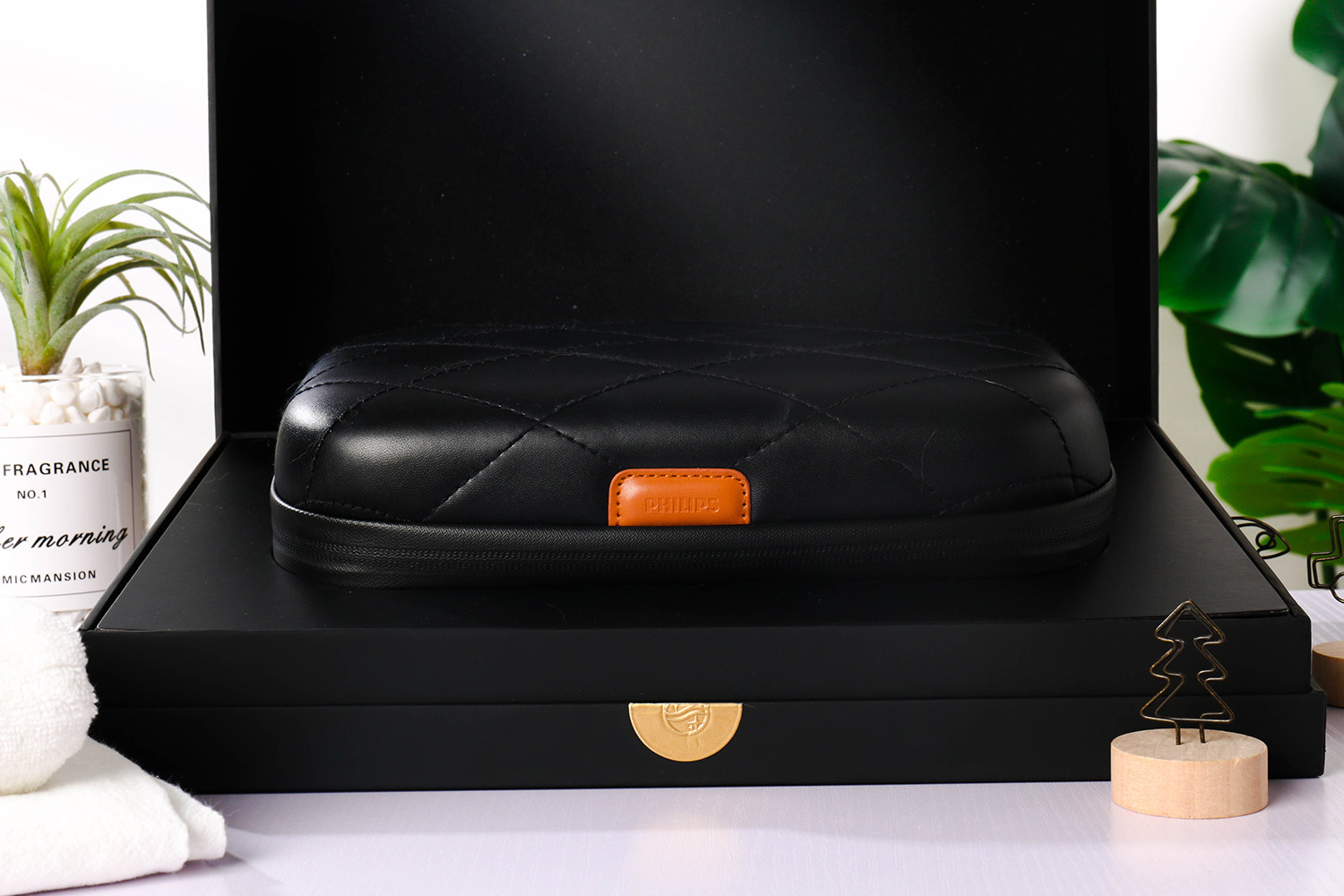 整个飞利浦礼盒套装体积不小,分量不轻,可见里面干货满满呢。纯黑包装设计加上封面的黑色产品外观,硬汉气息十足,特别有格调。