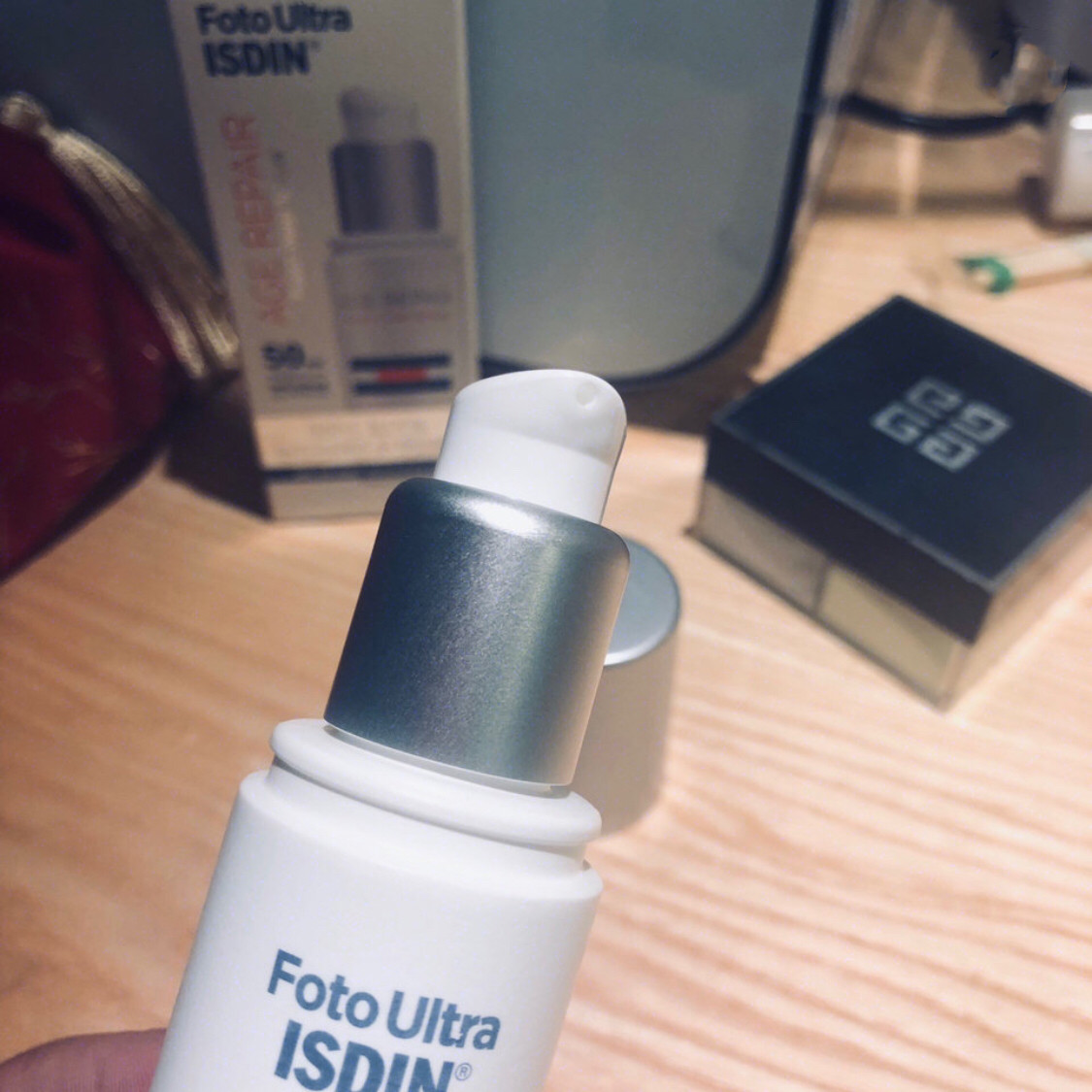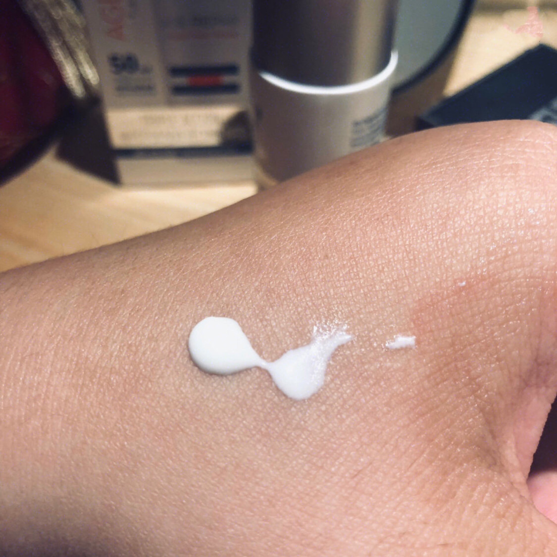 怡思丁加的防晒乳,这款防晒我觉得不死白,不出油,不戳泥,不会觉得很干什么的,含有透明质酸(玻尿酸)和维生素E水润,后续上装无压力。很容易推开,一点也不厚重,很像乳液。