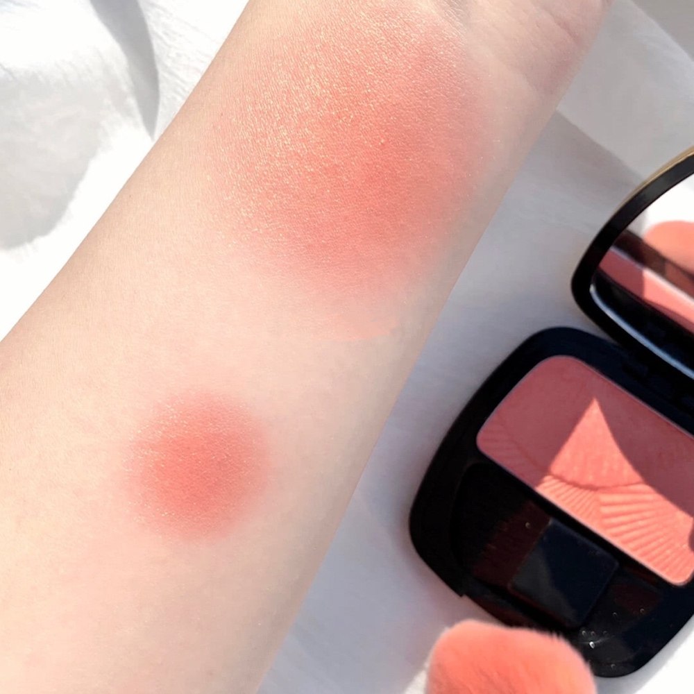 这块腮红上脸有种毛绒绒的感觉,就像那种柔焦感。妆效的话,是百搭的哑光妆效,每次用它我感觉我的毛孔都隐形了,就像加了美颜滤镜一样,十足减龄。黄皮可以放心入,一键变高级脸~