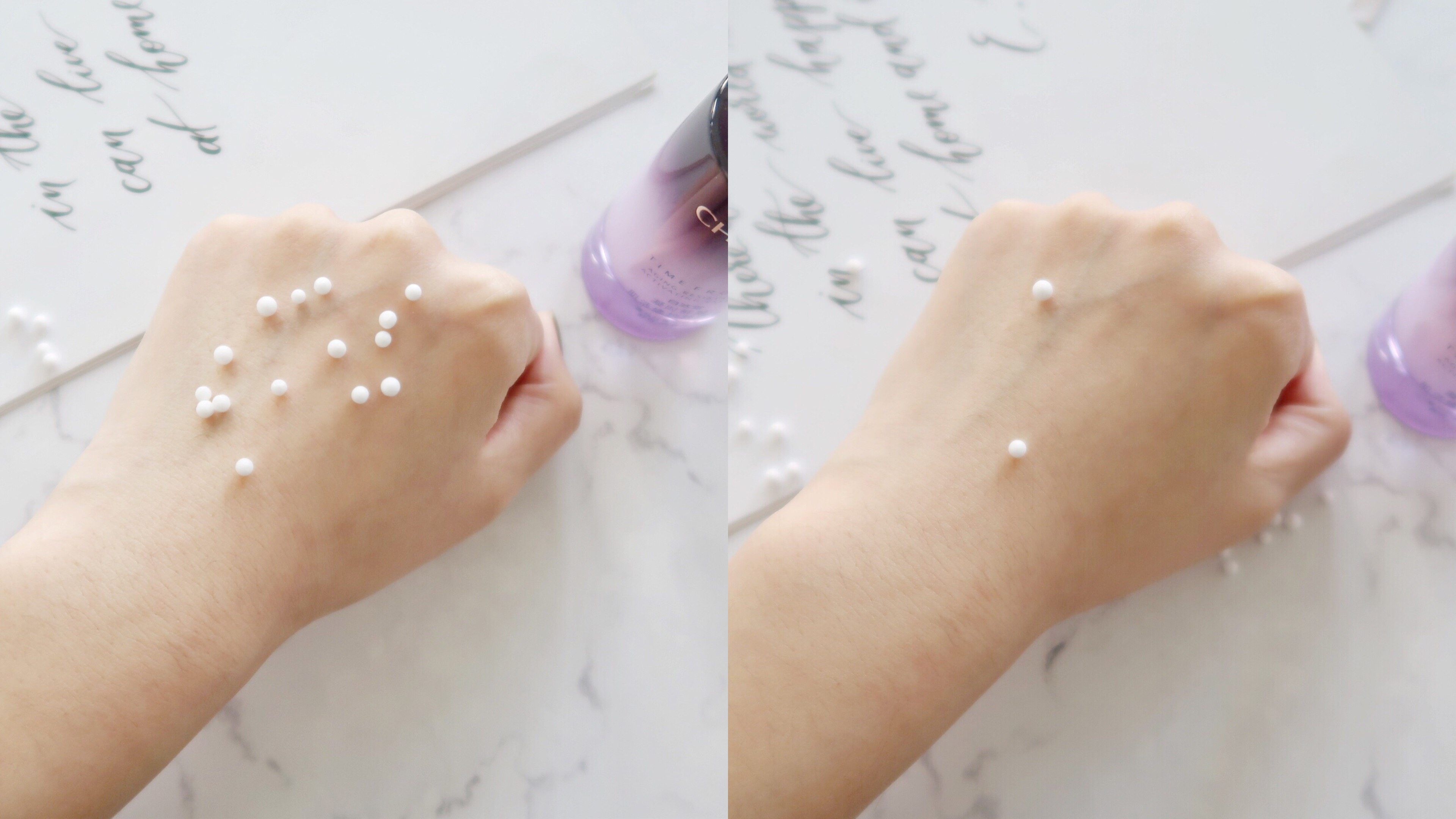 精华吸收的特别快,基本上按摩完全脸也就吸收的七七八八了,感觉皮肤“嗖”地一下就吸收了精华,触感水润又清爽!用泡沫球来测试一下,精华吸收后皮肤真滴顺滑!