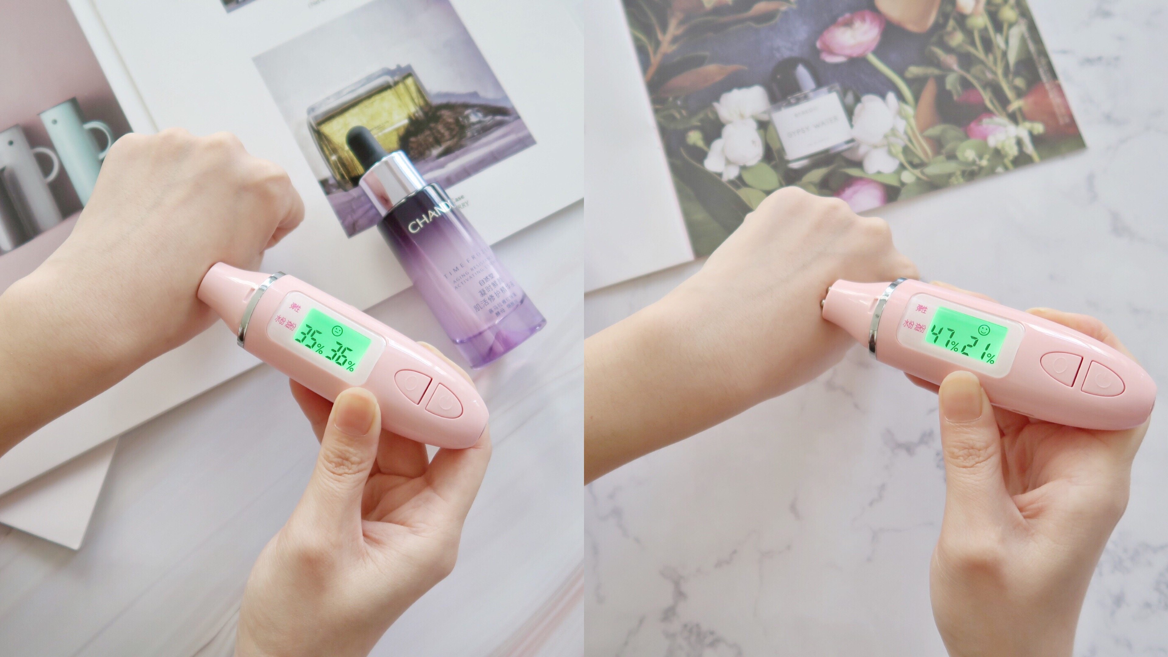 而且使用前手上水分只有35%,用过精华液之后,水分值飙升到了47%!油分也降低了不少,滋润度非常足够!混合皮也能达到水油平衡的状态~