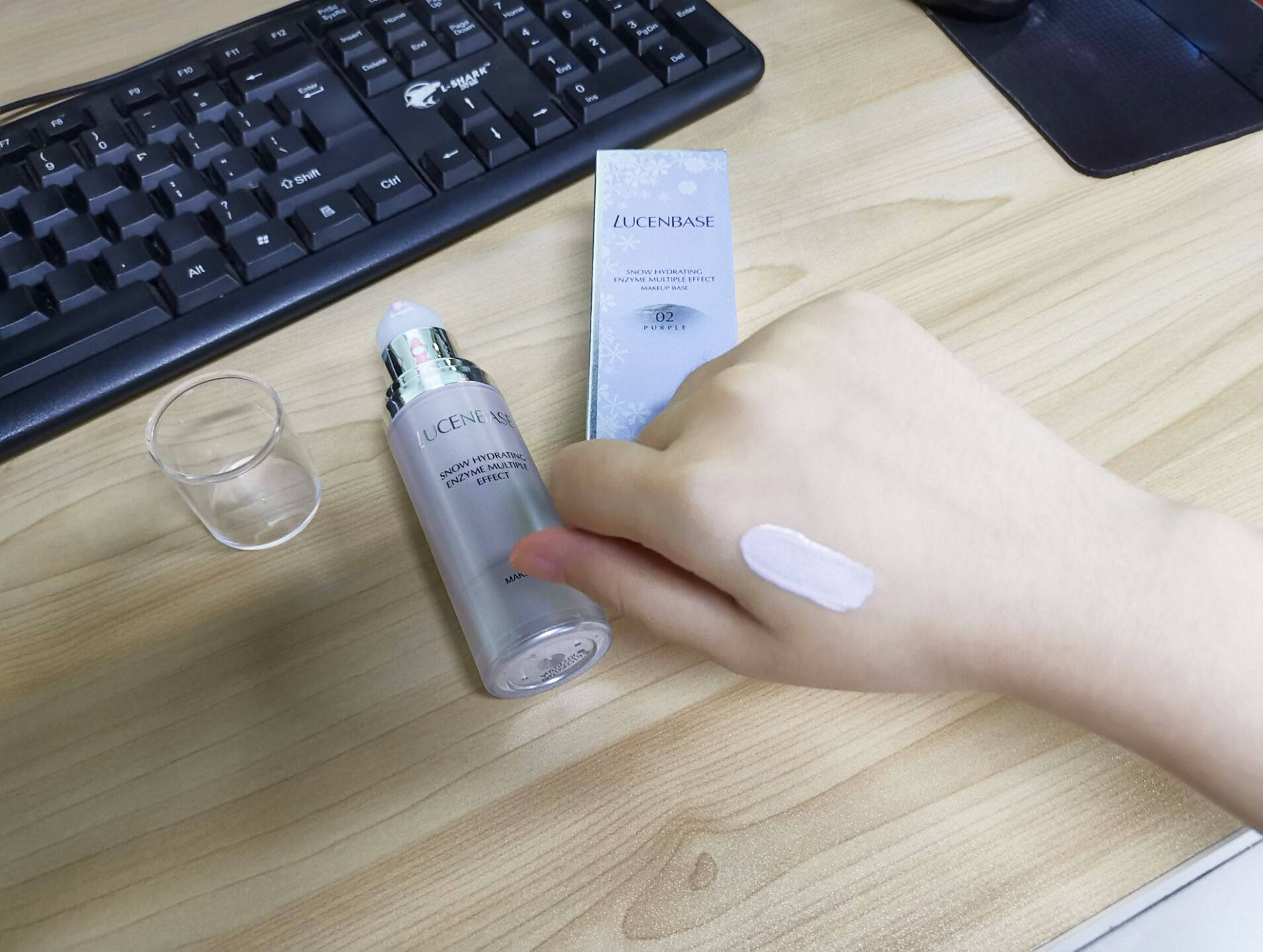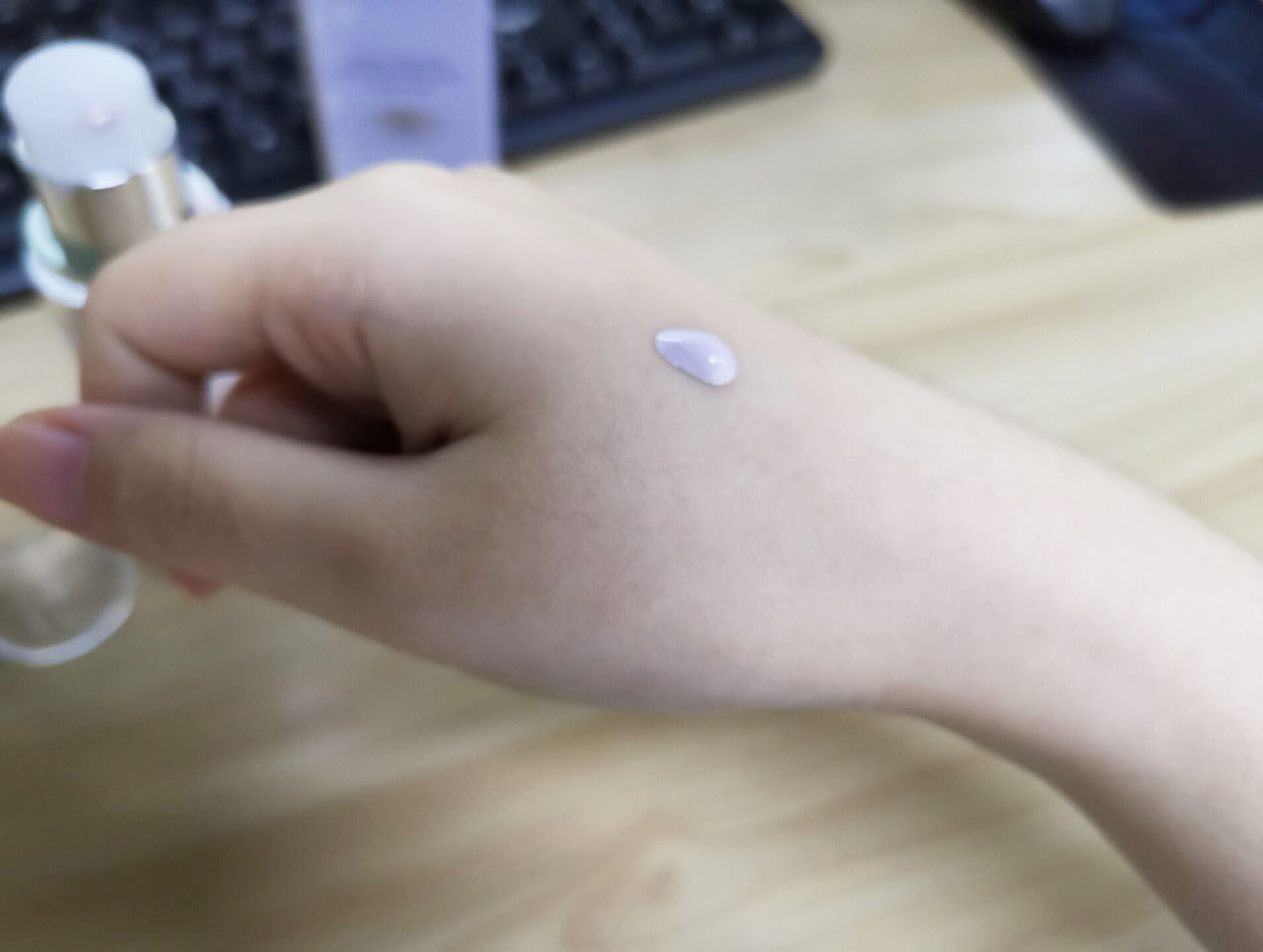 我用的是02号紫色隔离霜,它适合偏黄、暗沉的肤色。虽然乳液是紫色,本身的颜色有点深,但是却有提亮肤色的效果,用了它之后,我整个的肤色会变得透亮很多,不会那么暗沉。