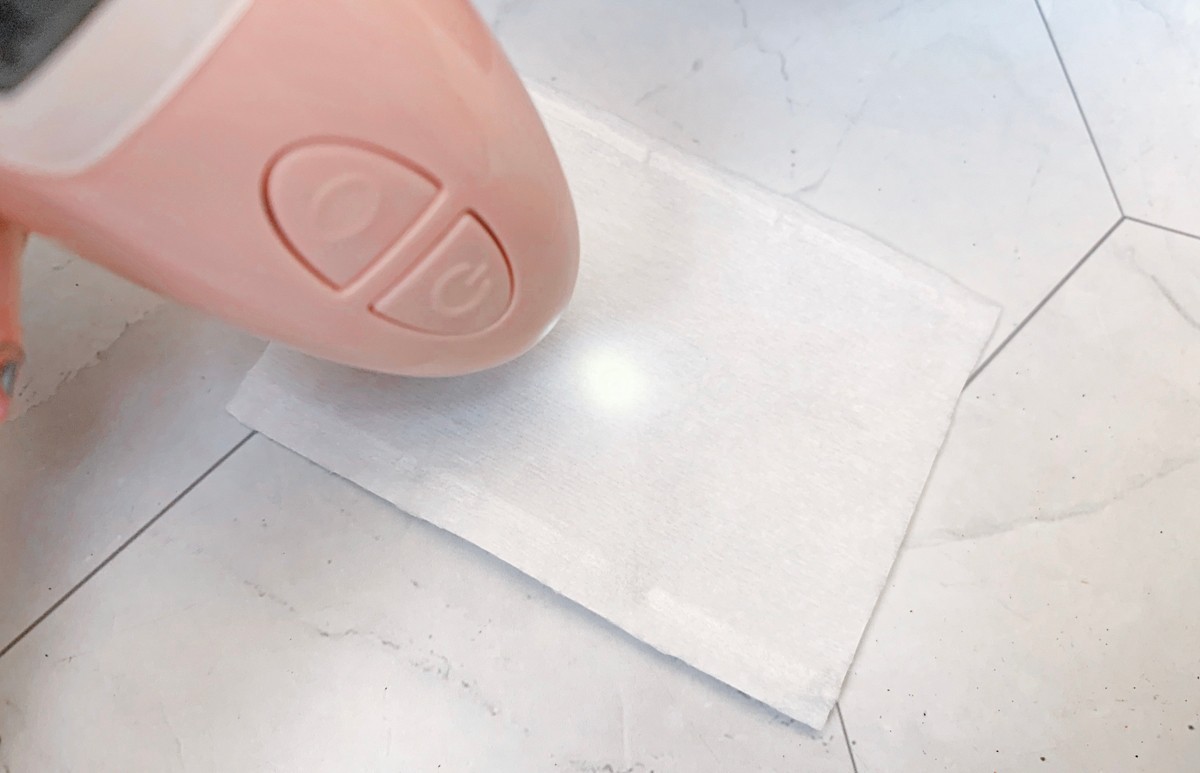白元的化妆棉选用优质天然棉花,并且以医疗标准清除棉中的杂质,但不会加入荧光增白剂等对人体或环境有害的物质。化妆棉呈自然的乳白色,用仪器检测一下荧光剂,如果灯光照射下呈紫色,代表含有荧光剂,如果是呈浅绿色光则是不含荧光剂,我们的白元化妆棉当然也是顺利过关的啦~~