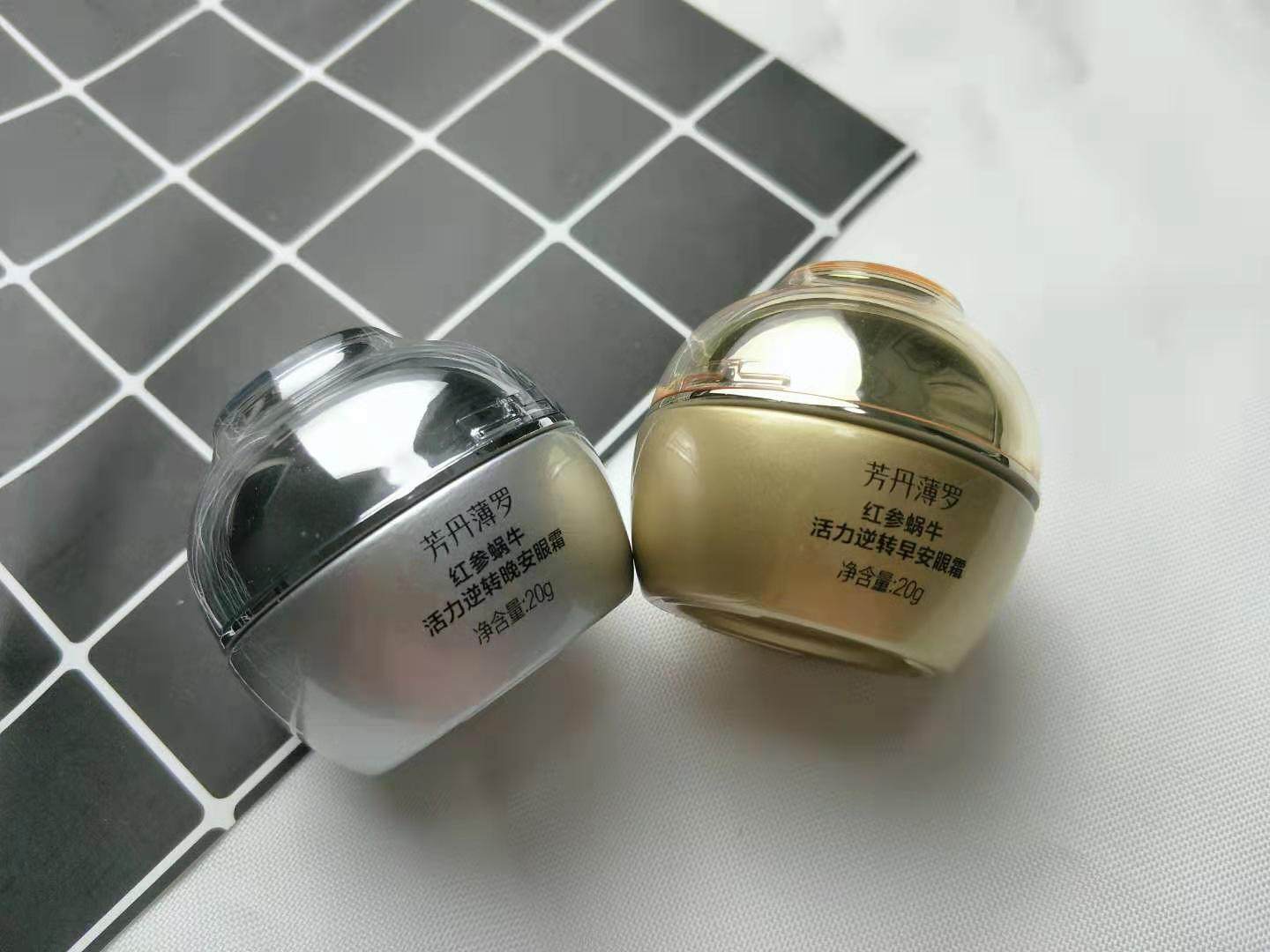 今天要分享的这款眼霜是芳丹薄罗家的红参蜗牛日夜眼霜组合,一个盒子里有两瓶眼霜,银色的是晚上用的,金色的是白天用的,瓶身圆滚滚的,小巧可爱。净含量各自在20g。