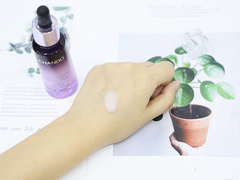 黑胶滴管设计,能精准地控制用量,涂全脸,一般2到3滴一次,完全不会造成浪费。精华是淡淡的天然香味,呈乳白色乳液状,流动性很好,质地也十分水润,完全没有厚重感。在手上一抹开,就像雾化了一样,很轻很薄,迅速渗透吸收。