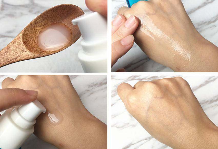 半透明的乳白色液体,第一眼看上去就觉得超级水润通透,流动性很好含水量很高,接触起来质地很轻薄,瞬间吸收,这个精华液超级清爽的,即使夏天使用也不会油腻。